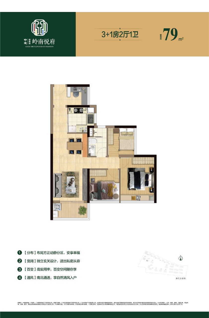 【户型】建面约65-108㎡二至四房,其中79㎡就能做到四房,而且南向设计,尺度极致。