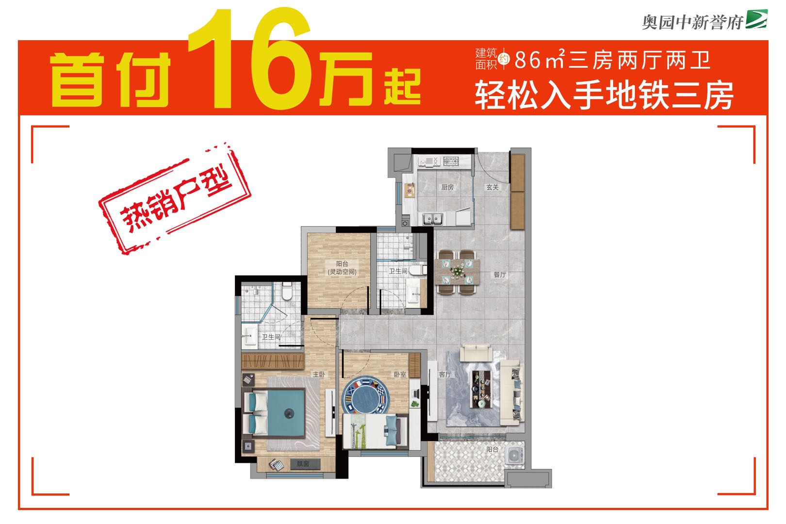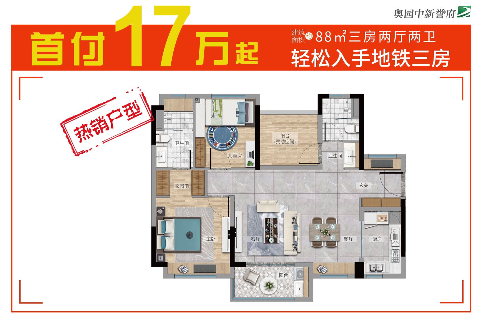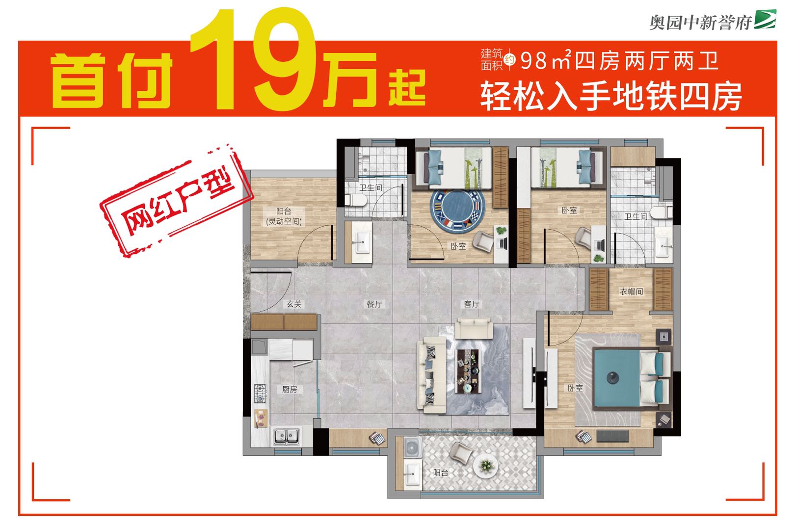 最易中盘产品——区域爆款户型,76-98㎡三-四房南向带精装,同等面积多一房,超高赠送率,秒杀片区所有对手