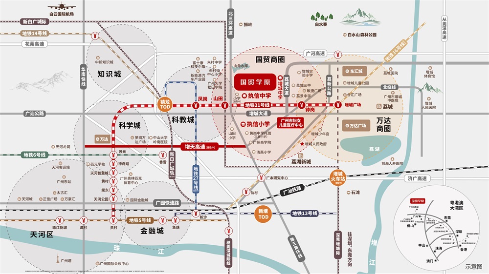 【区位】:粤港澳湾区枢纽地,广深科技创新走廊,天河东都市生态中央生活区。