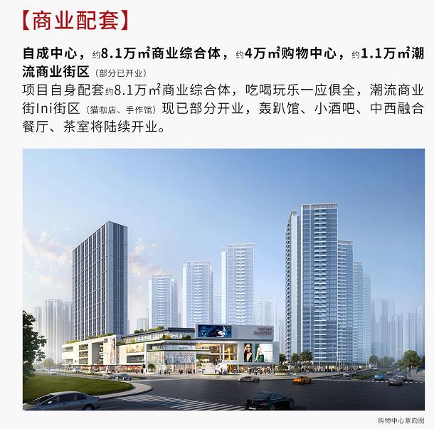 【商业】:自带建面约8.1万㎡商业体,享开放式商业中心和都市潮流商街。