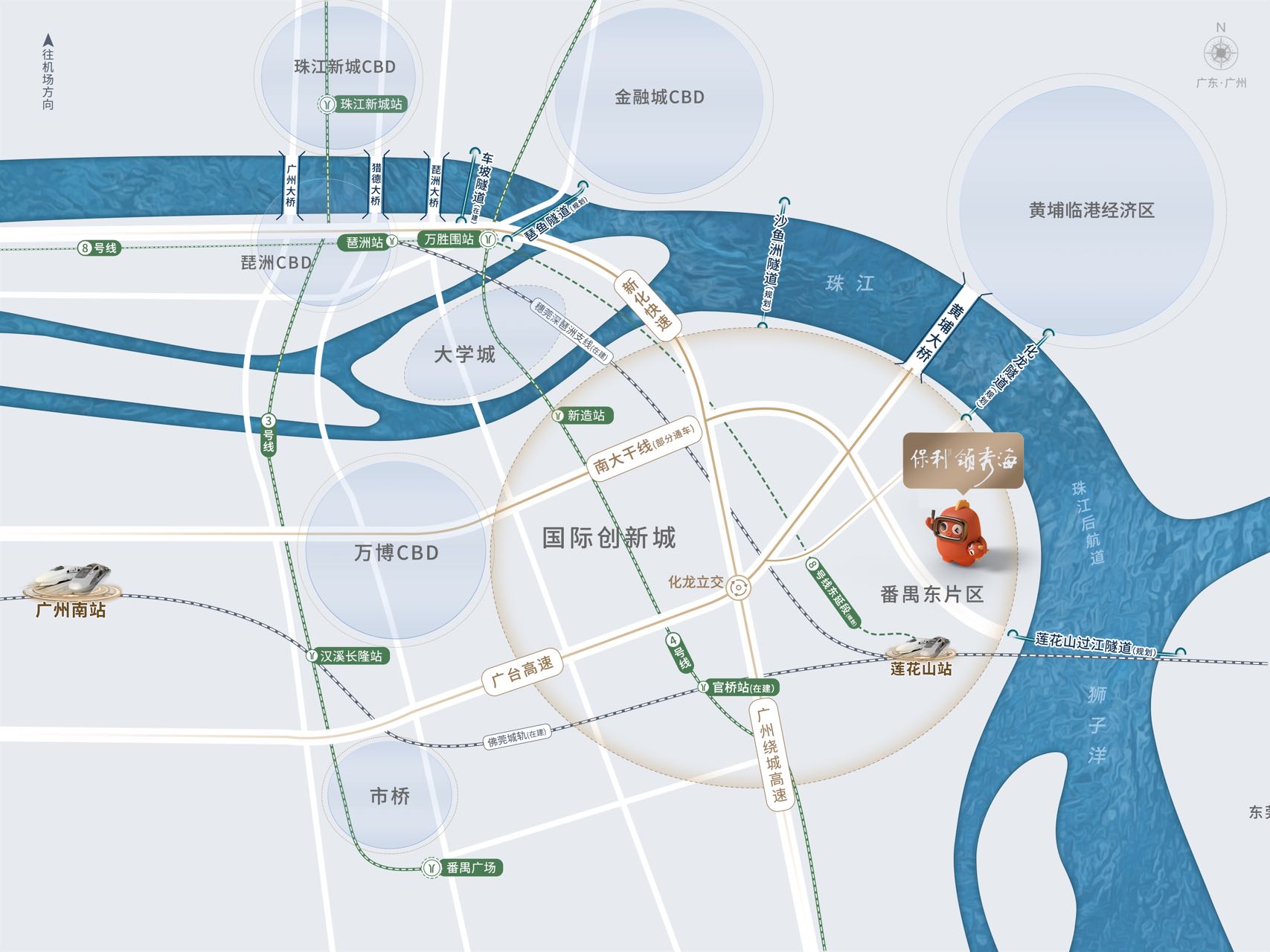 【区位 】保利领秀海择址莲花湾,与琶洲、国际金融城板块形成黄金三角,囊括2大千亿产业集群——国际创新城和广汽智联汽车产业园;