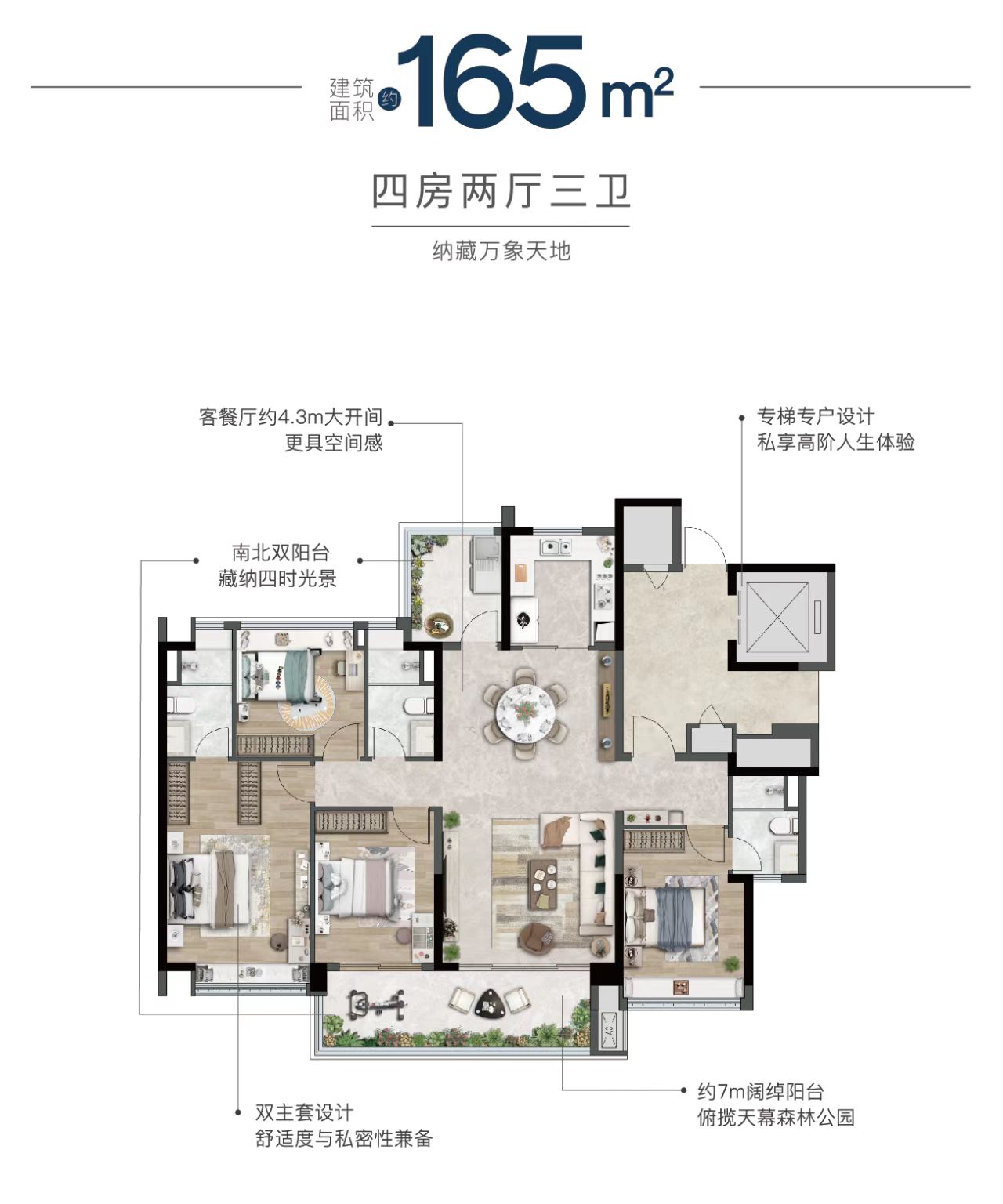 小区打造门第国风的3重归家礼序,私享约2万方中央园林,面积相当于2.8个国际标准足球场,户均占有率高达26%,其他点阵布局的项目,户均占有仅9%。项目园林绿地率高达35.7%,内含6大社区功能,包含会客厅、泳池、儿童乐园等,照顾各年龄段的家人们。