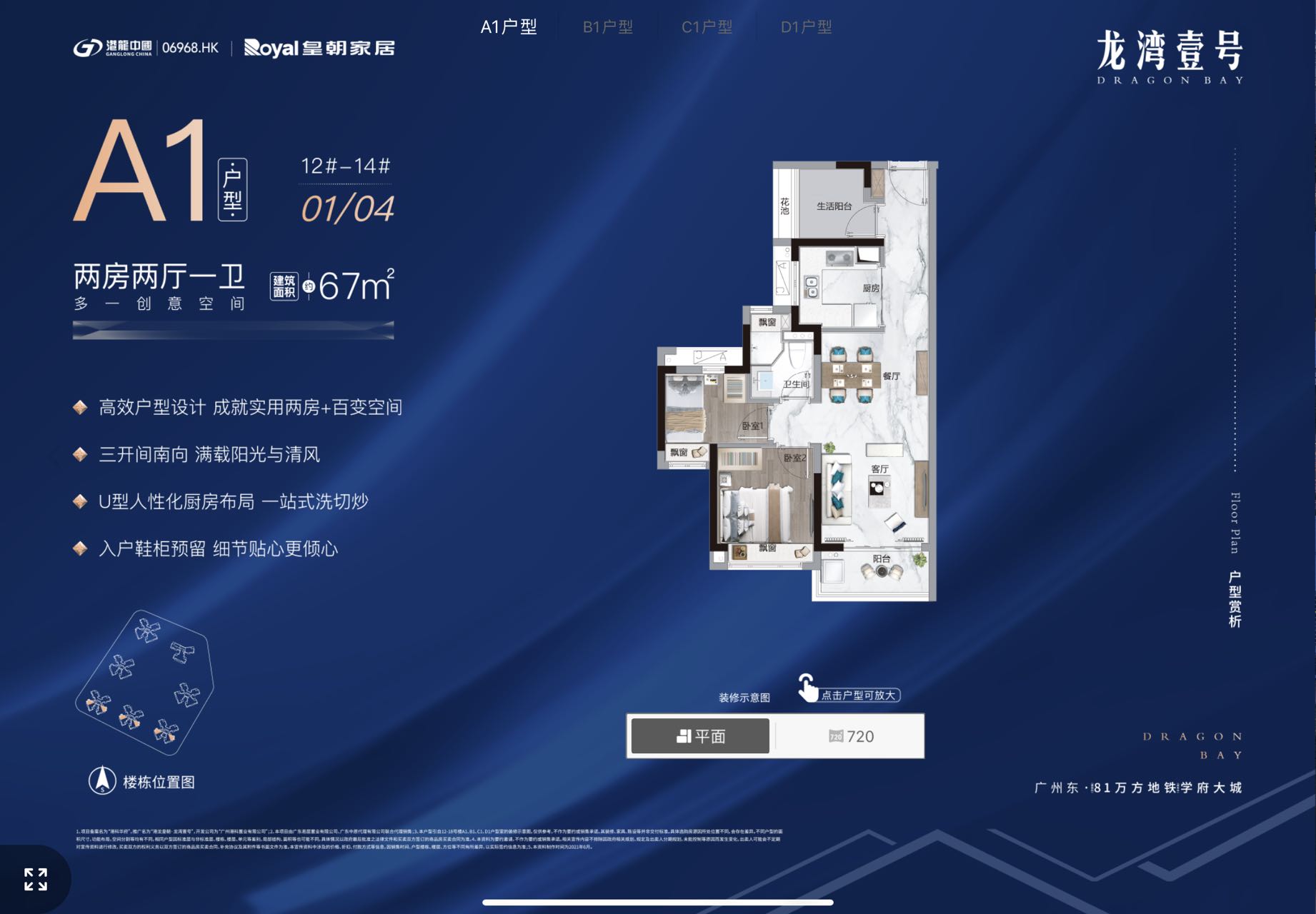 壹级户型∶建面约67-115m²全南三至五房,同等面积多一空间,通风采光俱佳,舒享更高效实用格用