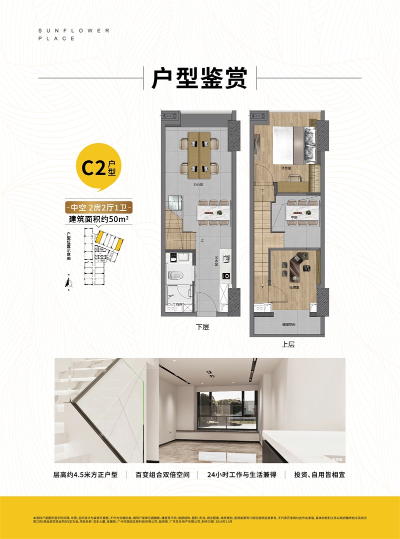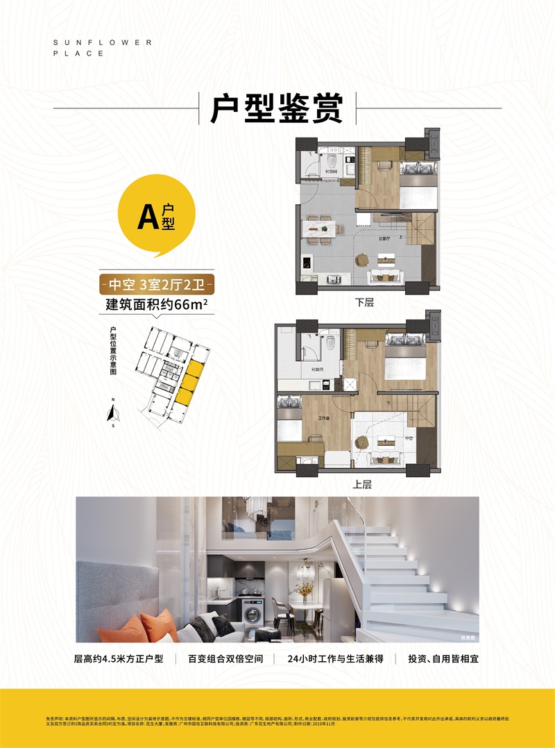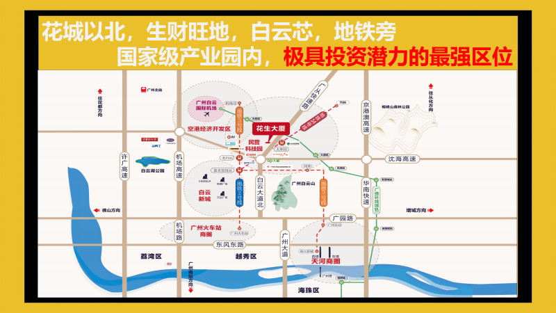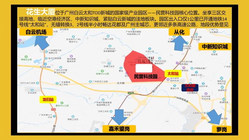花生大厦项目位于广州白云高新区民营科技园区,整个园区目前已入驻逾200多家科技企业,数百上千家各类企业,未来将打造为白云“硅谷”,比邻美国硅谷和日本新宿等著名的科技商务区,广东花生地产倾力打造,花生地产拥有丰富开发建设和运营经验。同时花生大厦是民营科技园区目前为数不多的商办类项目,集独栋商务办公、创意办公、缤纷商业、多元商务生活配套于一体的旗舰级新时代商务办公楼,宜业、宜商的都市化办公休闲示范区。 项目占地面积0.98万㎡,总建筑面积6.6万㎡,绿化率为35%,整体由3栋楼宇构成,分别是1栋22层;2栋21层;3栋13层。同时地下建筑约1.6万㎡(共2层),园区内稀缺的4.5米层高空间,面积段为34-193㎡的臻品LOFT户型,主力户型为45-68㎡,可满足不同容量的企业办公需求,轻松打造灵活百变的多功能创客空间!