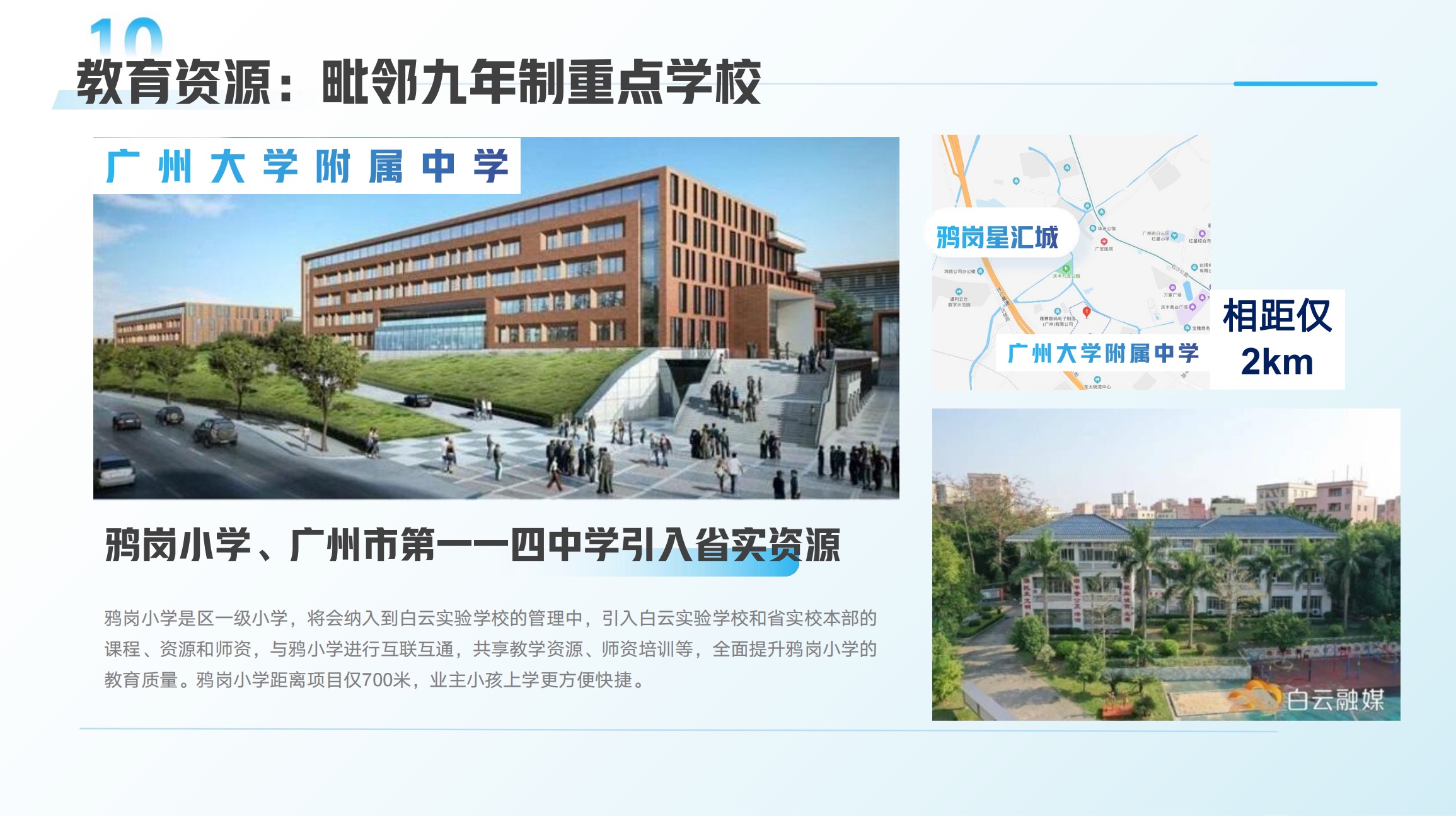【省实教育】鸦岗经济联合社拨款5000万白云教育基金助力教育发展,鸦岗小学和广州市114中学引入广东实验学校资源提高教育质量,项目距离鸦岗小学仅700米,上学及其便利