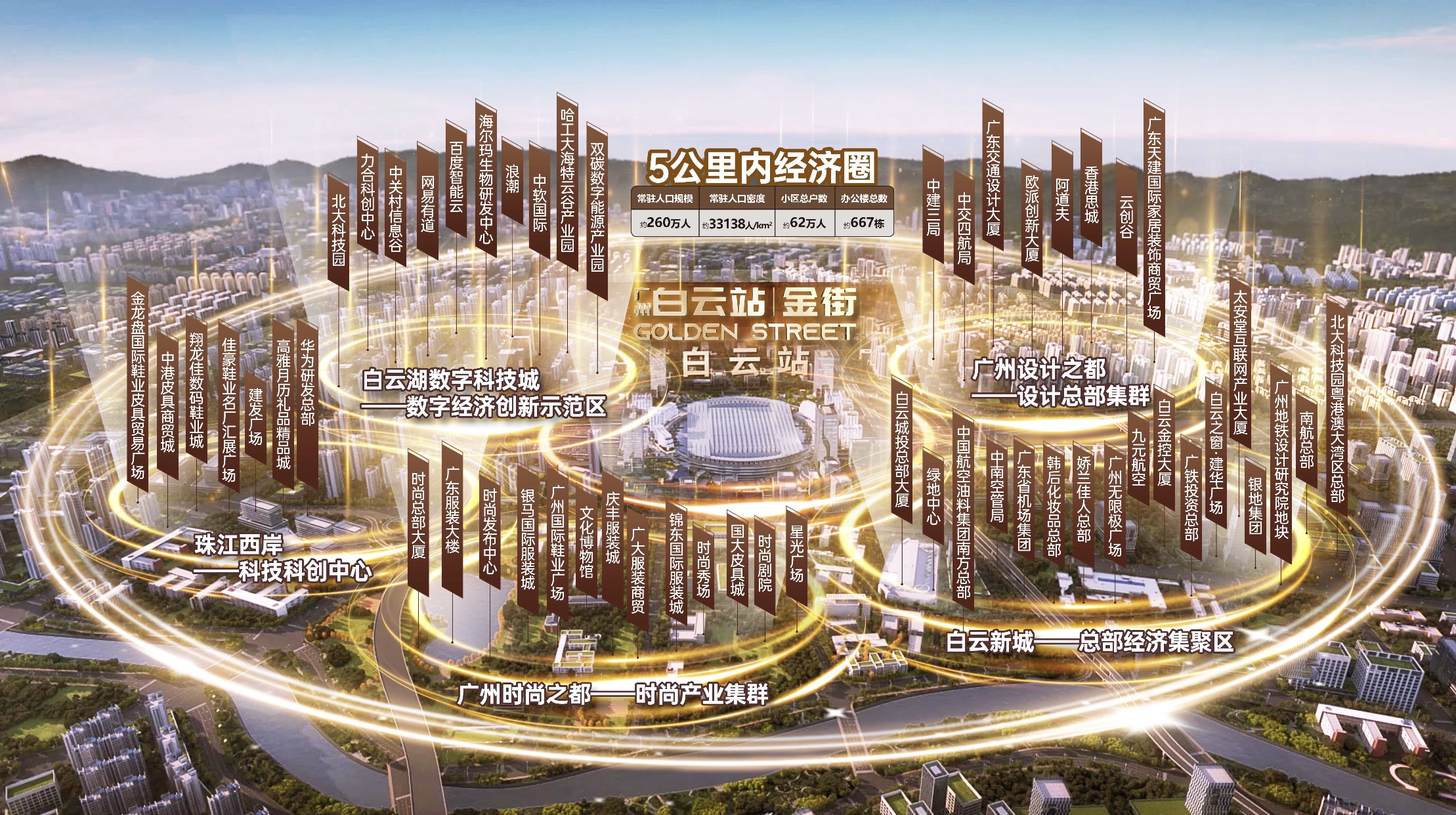 作为广州人口最密集的地段、时尚之都的发展核心区,5公里范围内260万常驻人生活所向,各大商圈围绕,超50个服装、化妆品、皮具等大型知名专业市场,毗邻广州人流最大的百信广场商圈,生活、工作、社交、医疗配套一应俱全