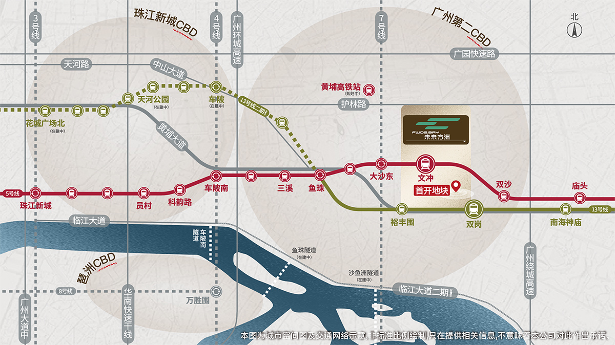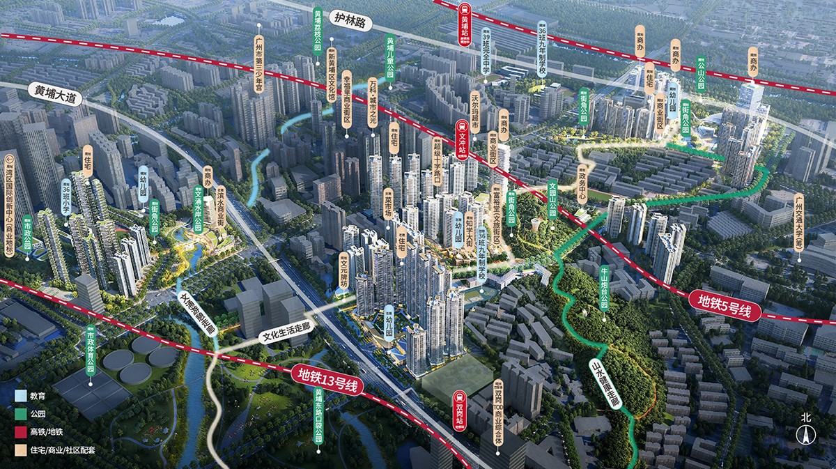 通达之洲双地铁上盖,快链慢行随时出发5号线文冲站、13号线双岗站双地铁轻松出行,规划多个生活主题漫步游径,举步穿越古今