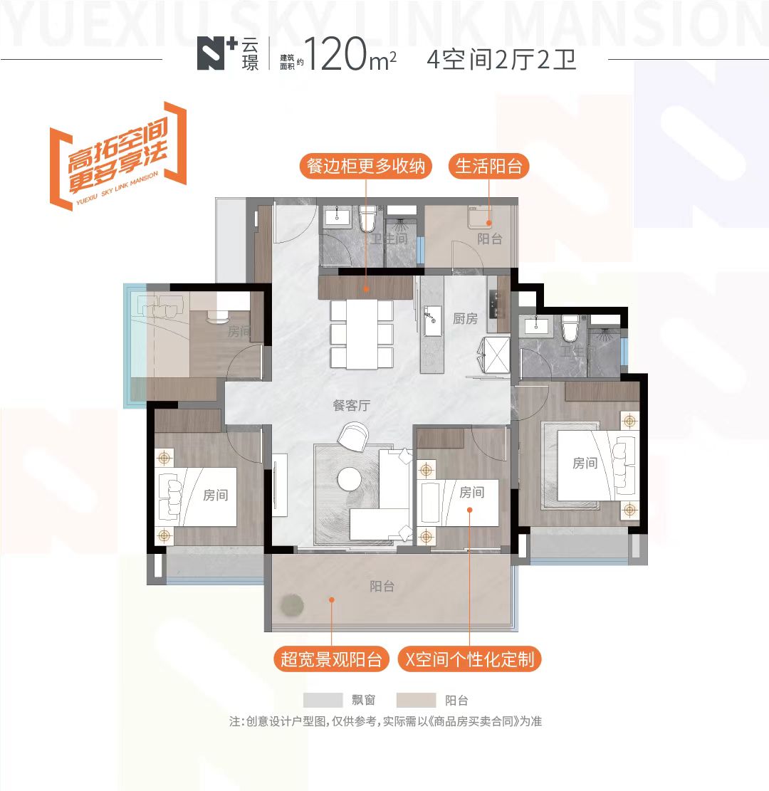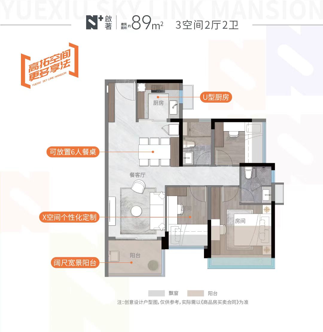 【产品】建面约89-169㎡跃级三至四房,跨界共融共生的多元融合。户型均有LDKB互通,保证舒适通风采光及与家人交流互动空间。板块内采用20%阳台建设比例项目。