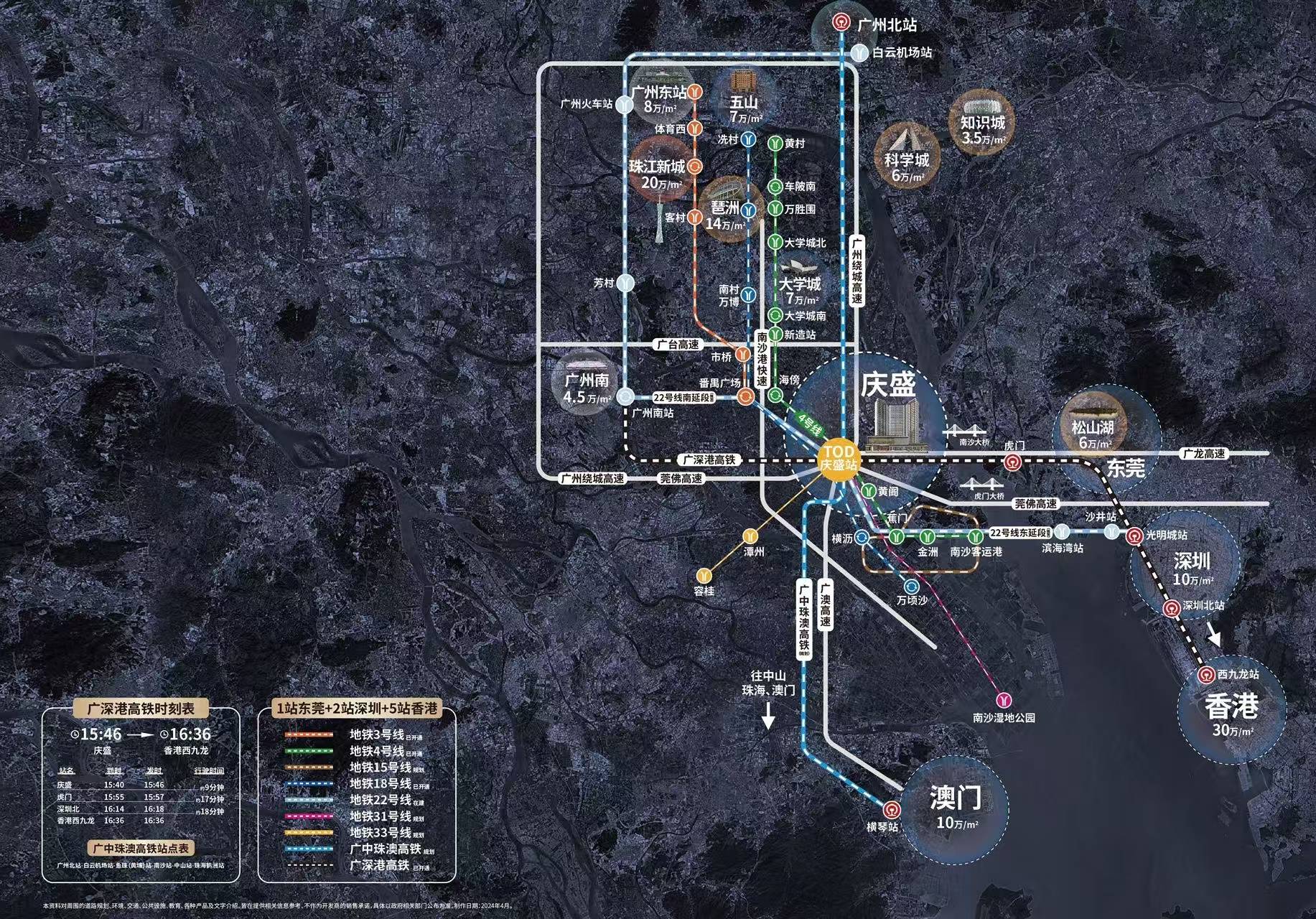 【区位】南沙位于湾区地理几何中心,地处湾区心脏。庆盛是湾区交通核心枢纽,多轨道交通,六轨交汇,一个支点撬动世界。庆盛是内地可同时高铁直达港澳且近临广州主城区的交通枢纽,实现湾区香港生活圈。