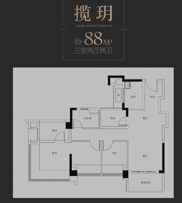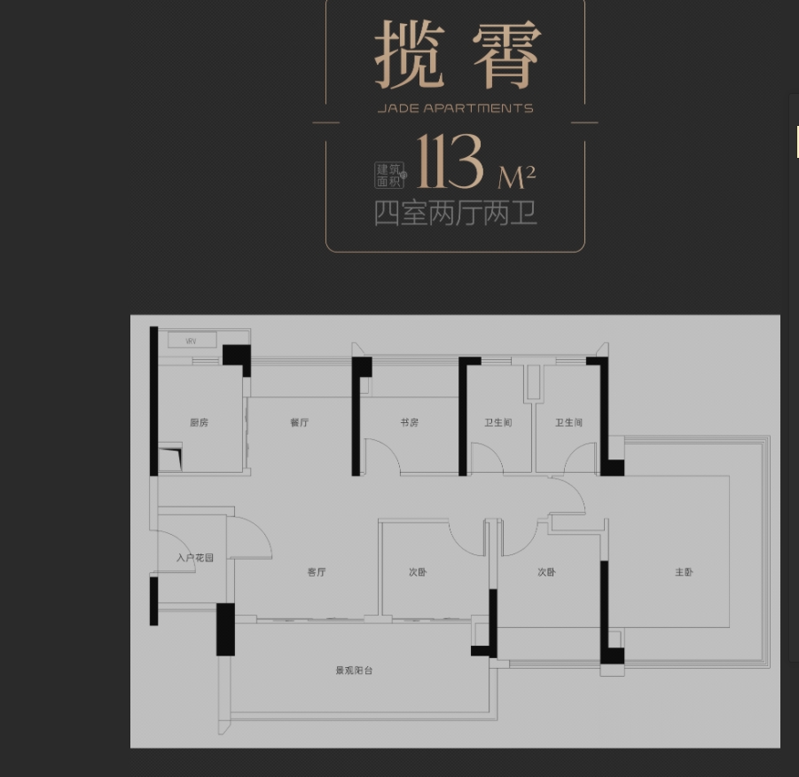 建筑面积约88-113㎡高利用新规三四房,四开间朝南户型,创新收纳交标。