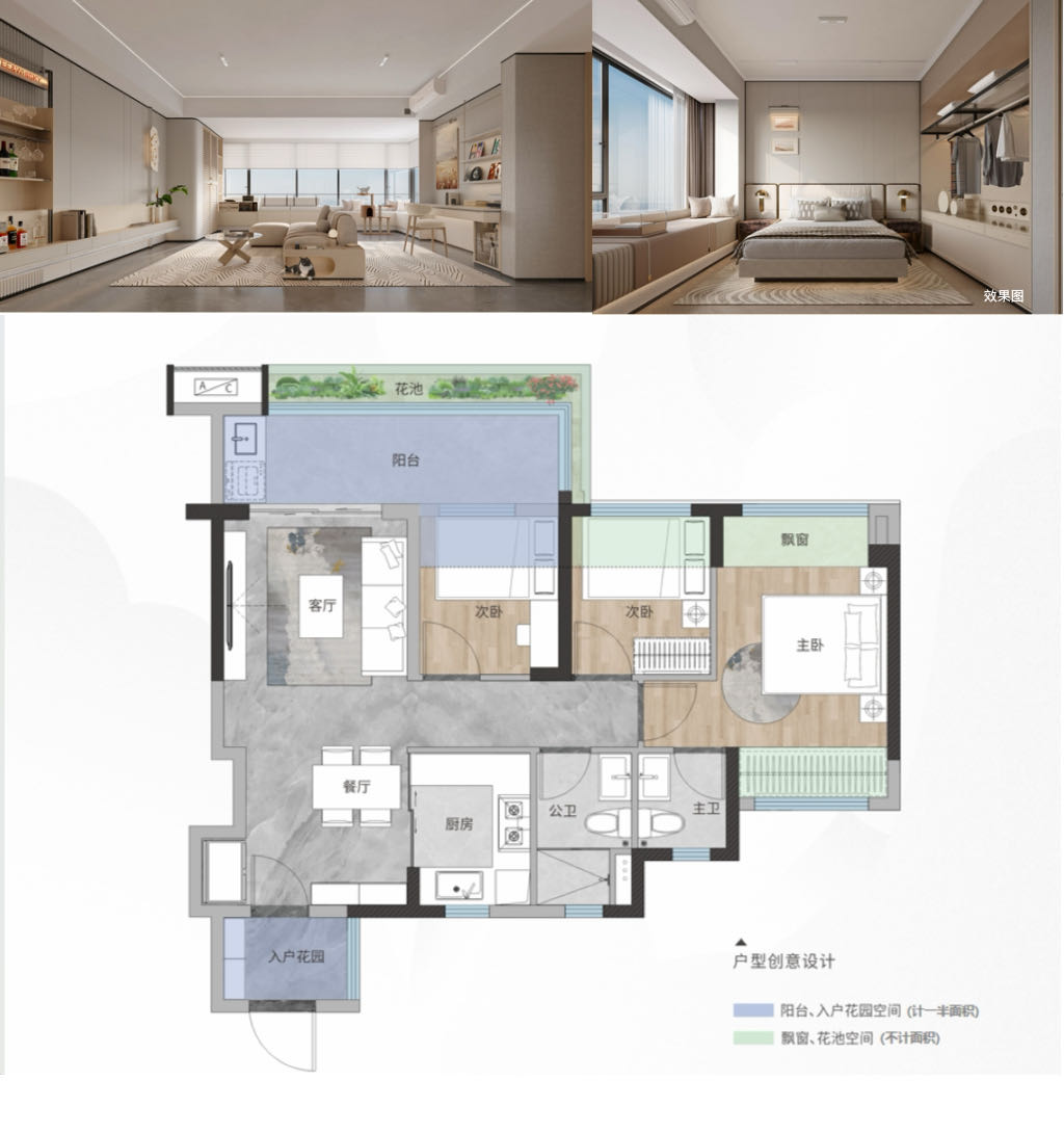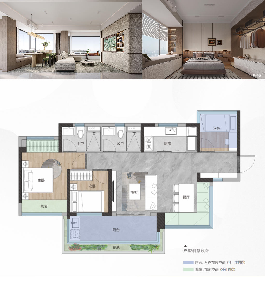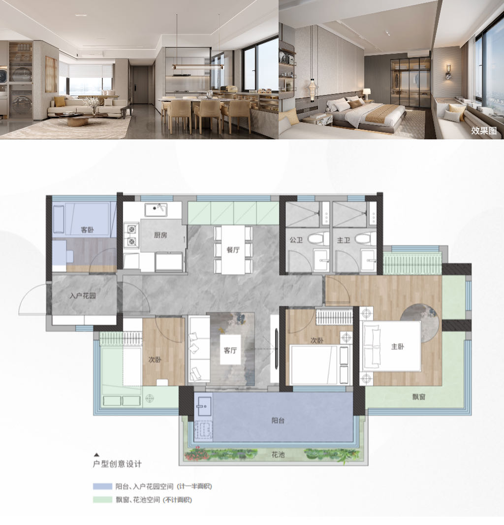 户型:约77-95㎡超100%使用率三至四房