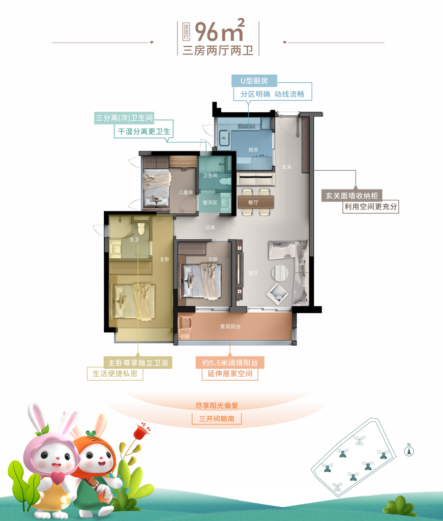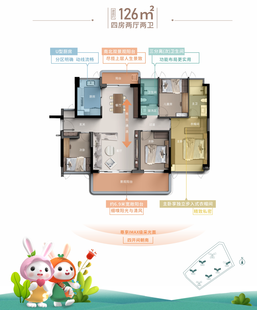 7、两梯四户,3米层高,高赠送约96-143㎡精装全南向三四房