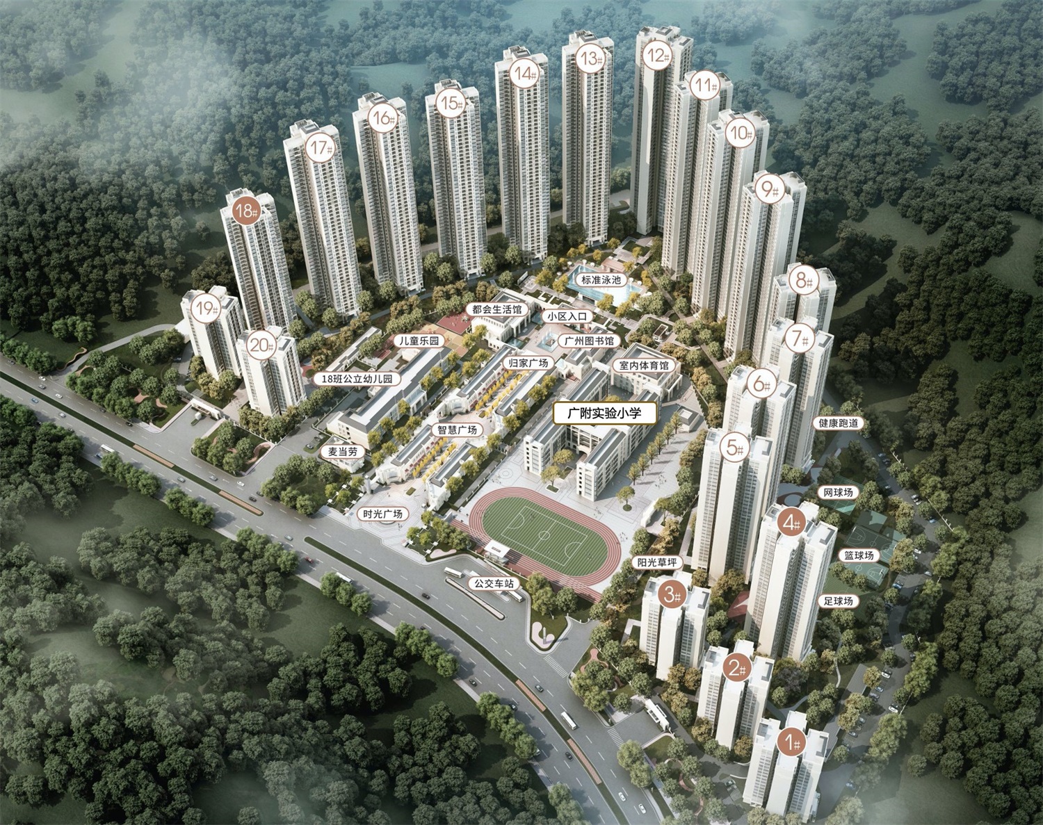 小学:广州教育城24所品牌专职院校、朱村一中、朱村二中、朱村中心小学、广州大学松田学院等