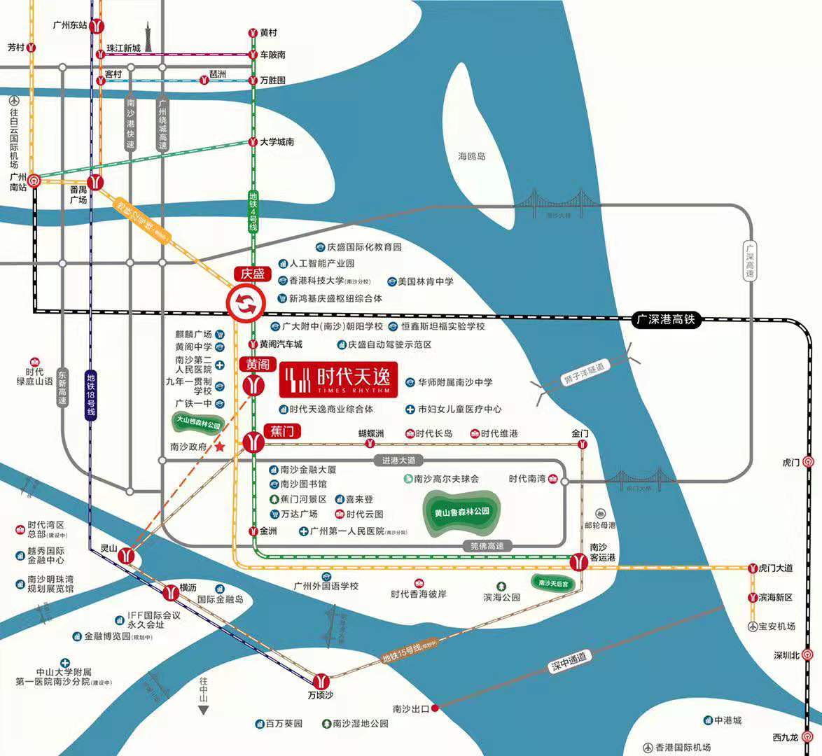 【区位】项目位于南沙三大核心板块中心位置黄阁,15分钟内通达行政、金融、教育、交通枢纽。