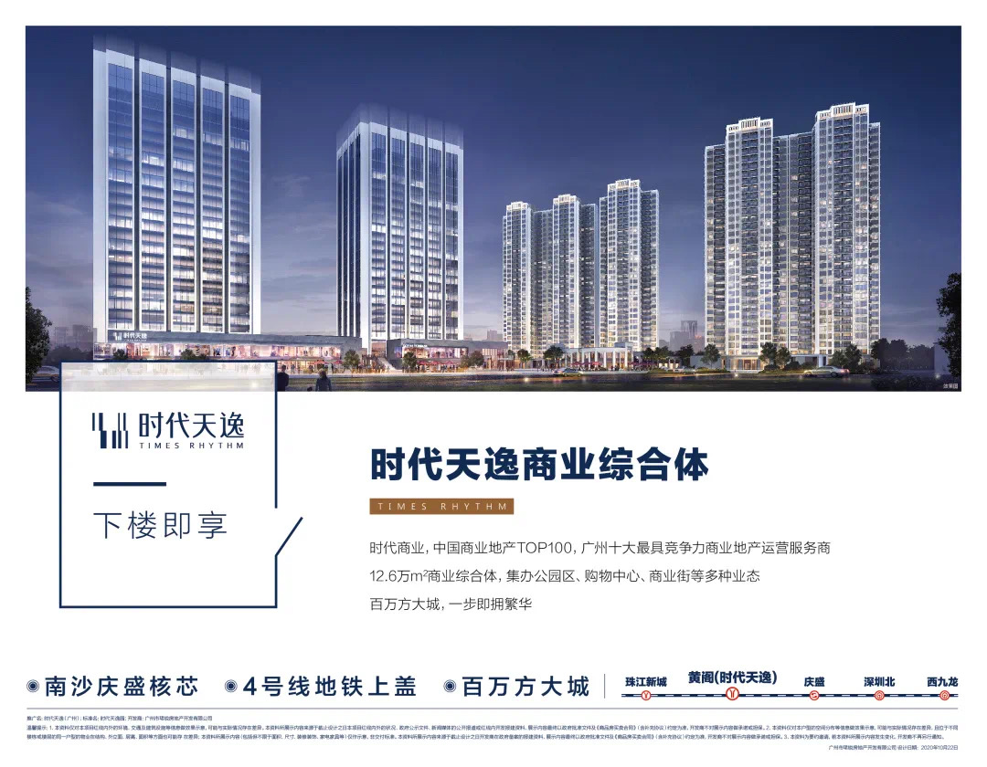 【商业】时代天逸自带约12.6万㎡商业综合体,周边约40万㎡大型购物综合体南沙万达、37万㎡新鸿基庆盛枢纽综合体环伺。