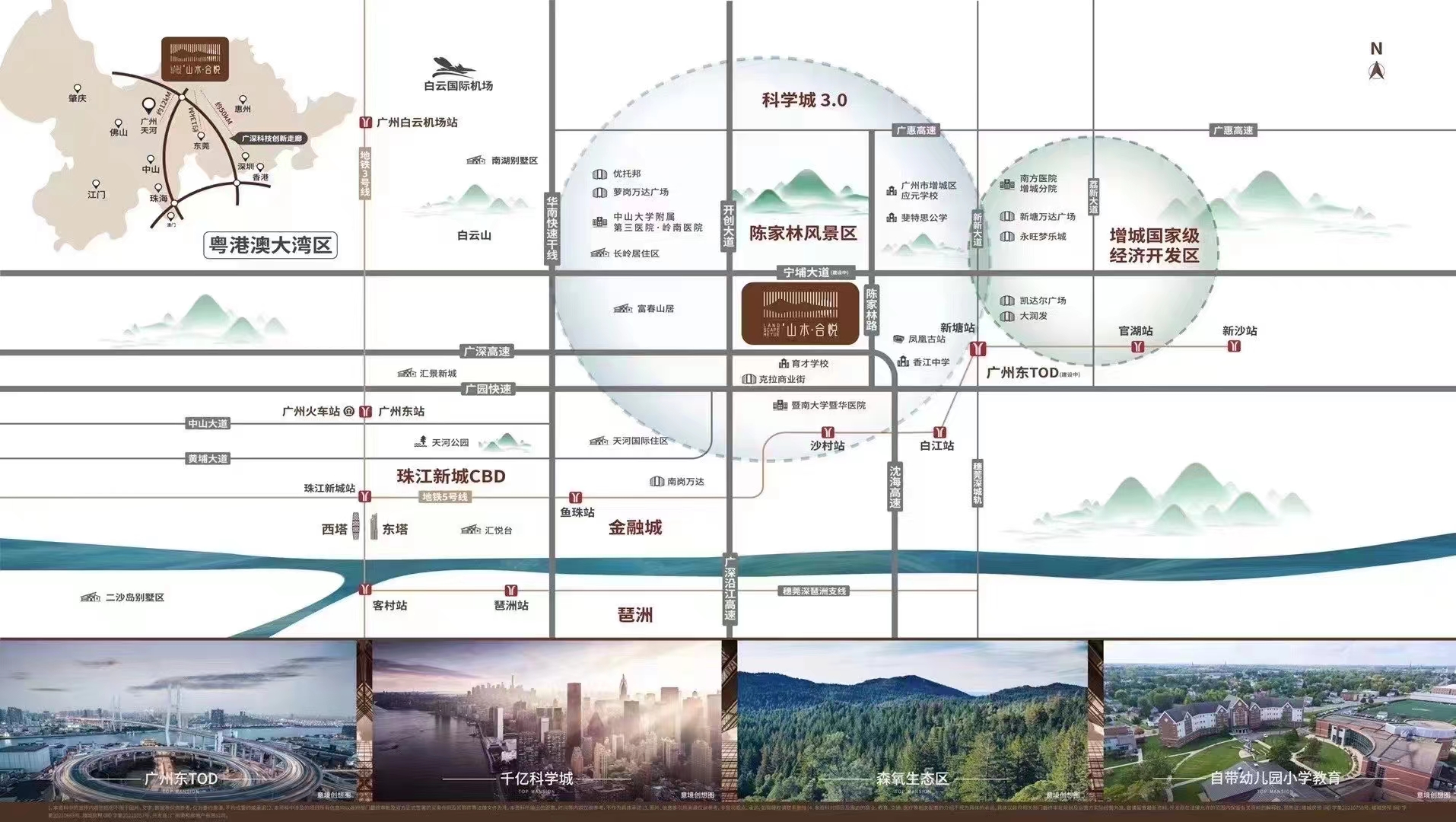 【区位 】山水合悦选址环山临水之地,拥万亩陈家林风景区,毗邻广州东TOD,打造高阶城市别墅大盘。项目一路之隔即是黄埔,瞬达天河,交通便利。