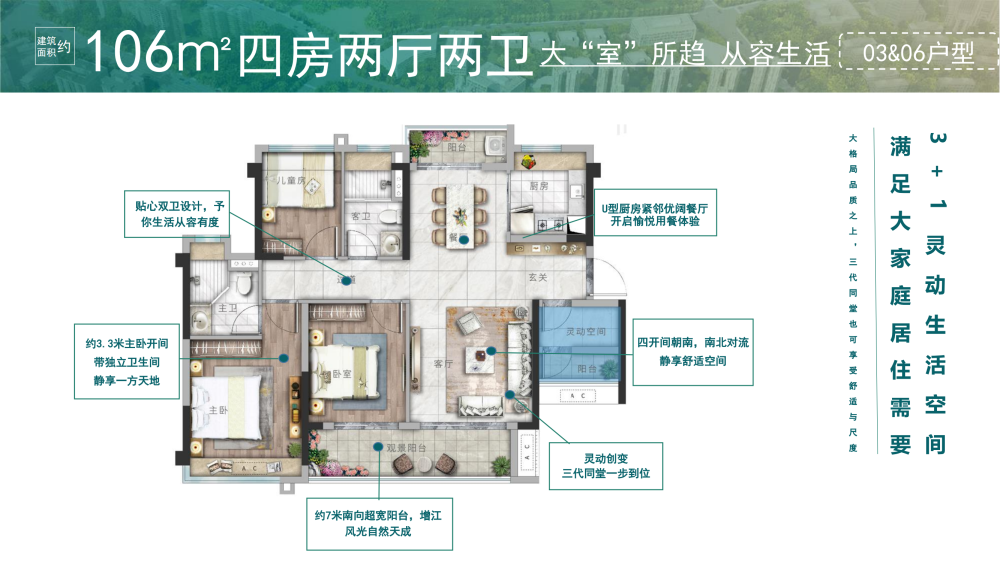 【3】 约83-107㎡高实用三至四房,全明户型设计,N+1百变灵动空间,绝佳性价比之选。