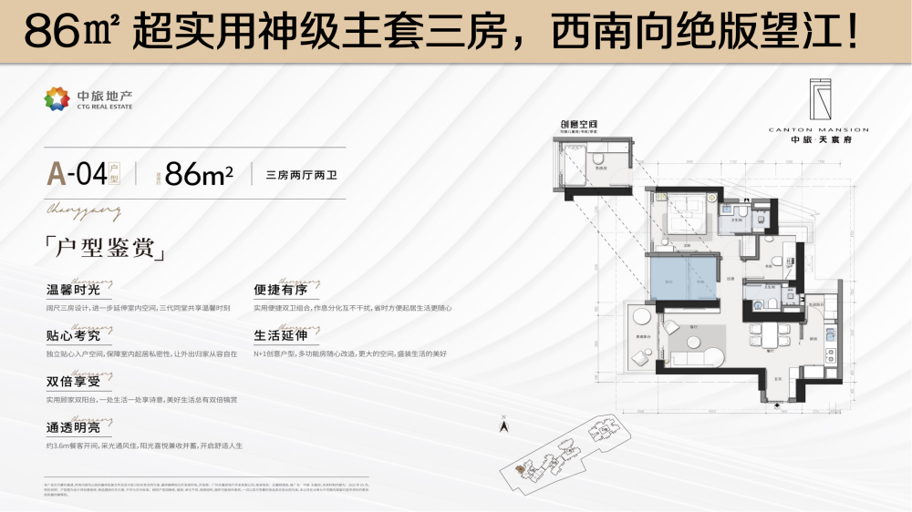 实用户型:82-120㎡超低门槛江城双景