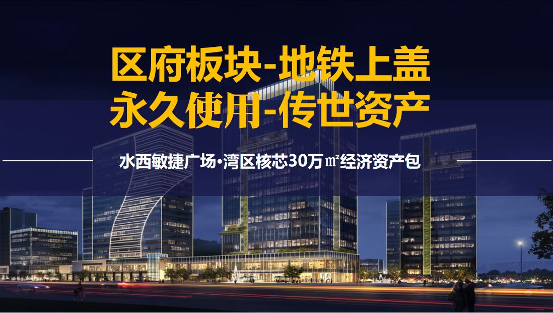 "水西敏捷广场为敏捷集团再度布局黄埔的诚意之作,拥有办公、商业、酒店、综合配套等多重业态。 项目位于广州科学城与长岭居交汇核芯位置,有轨电车1号线北师大实验学校站举步即达,地铁21号线长平站,5轨交汇,畅达全城。广州医科大学附属妇女儿童医院(在建)一路之隔,项目紧邻北师大广州实验学校,人文氛围浓郁。周边近40万㎡长岭门户商业,超6万㎡万达商业规划环伺,项目总建筑面积约30万㎡,集商业、办公、酒店,综合配套为一体的综合体,自带约5万㎡便利商业配套。项目首推建筑面积约30-62㎡创办空间,布局方正,精致实用。项目更与4大品牌酒管公司达成战略联盟,届时客户可根据自身情况选择酒管公司托管,省心又省力。"