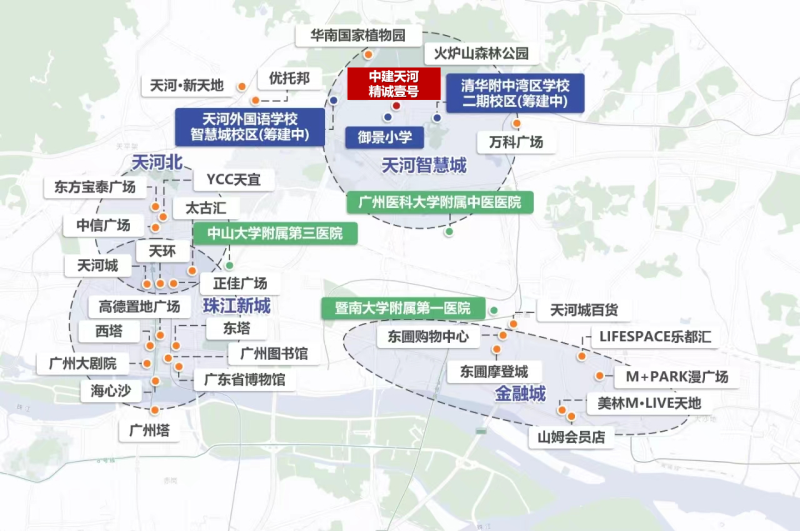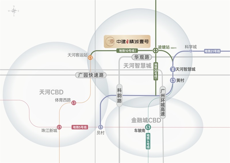 中建天河精诚壹号临近有21号线天河智慧城站,不过距离不近,步行约1.8公里,基本要靠打车或者电瓶车接驳地铁。对于刚需来说,不是特别方便。自驾出行还是方便的,项目附近就有华南快速和沈海高速出入口,去金融城、琶洲、珠江新城都很方便。