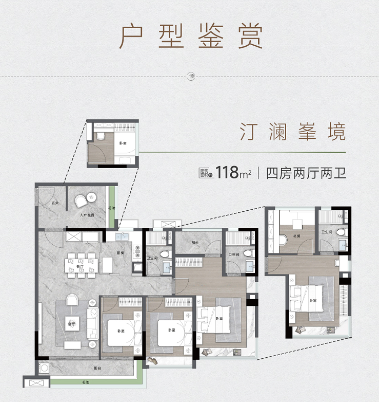 中建天河精诚壹号采用的低密度+围合式布局,这种也是近年主流布局了,提升了楼栋的采光和视野度,也让中间园林更开阔。