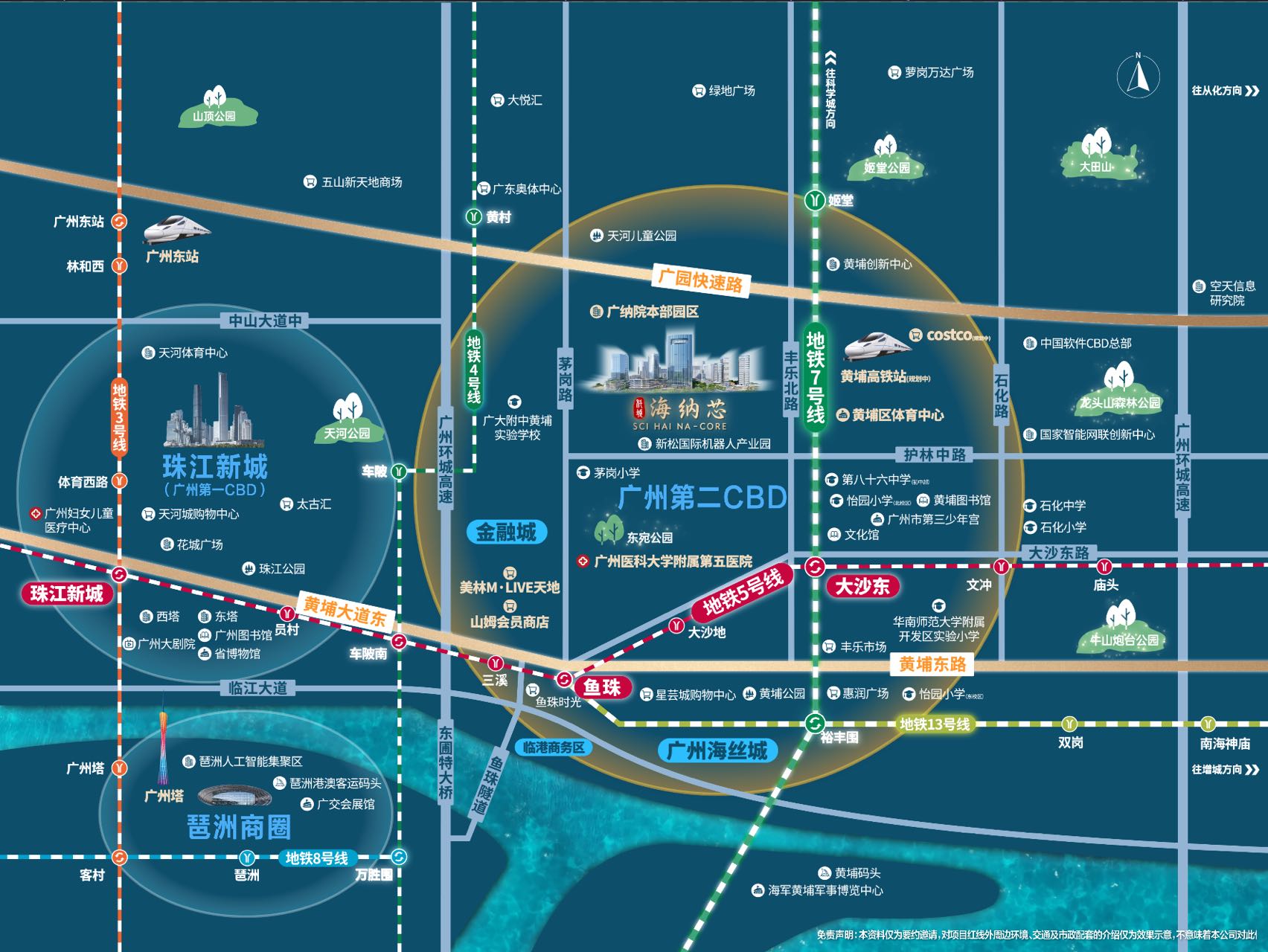 【广州东进发展桥头堡 踞老黄埔】三纵四横路网,一条广园快速路,快速串联珠、金、琶三大 CBD,5 公里黄金生活 圈可达山姆会员超市、宜家家居、金融城 CBD,周边 3 条地铁线,家楼下配套公交站场畅连地铁口、商圈、景点。
