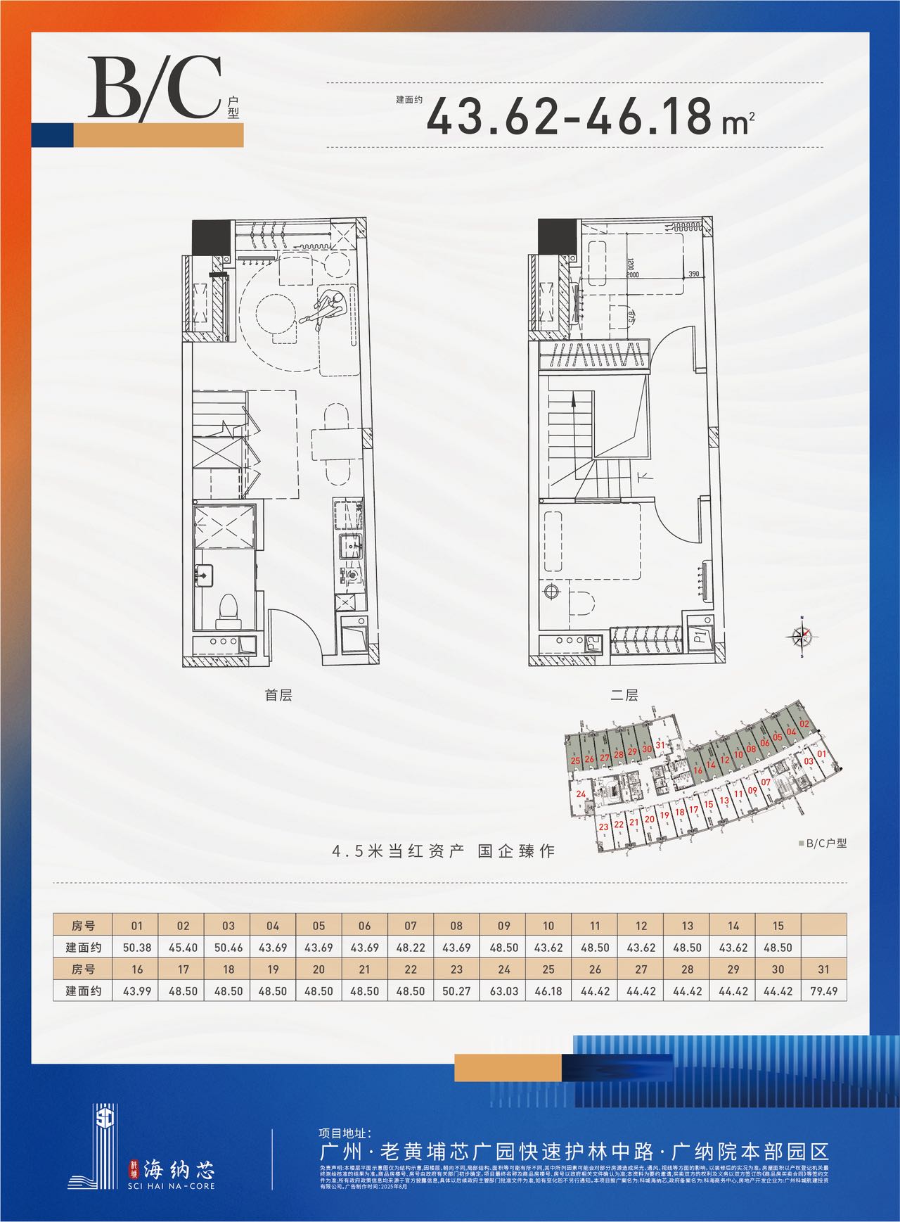 【老黄埔当红资产 双层空间 双倍享受】4.5 米上下两层设计,约 100%使用率。主题外立面现代建筑风格,弧形建筑 布局和流动空间组合,与一、二期地块充分融合,完成了以“纳米圆”为概念的超级城市景观。